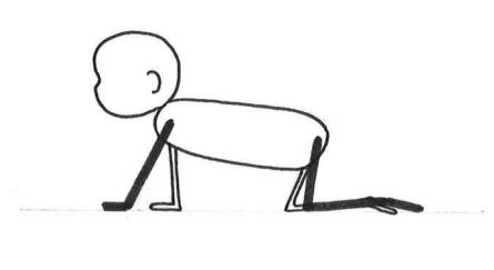 | Positief | Het kind komt vooruit op handen en knieën (of voeten), zonder met de buik de ondergrond te raken (zie figuur) en met symmetrische bewegingen van armen, handen en benen. |